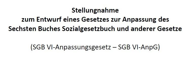 Die Arbeitsgemeinschaft medizinische Rehabilitation SGB IX hat eine Stellungnahme zum Entwurf eines Gesetzes zur Anpassung des Sechsten Buches Sozialgesetzbuch und anderer Gesetze (SGB VI-Anpassungsgesetz – SGB VI-AnpG) veröffentlicht.